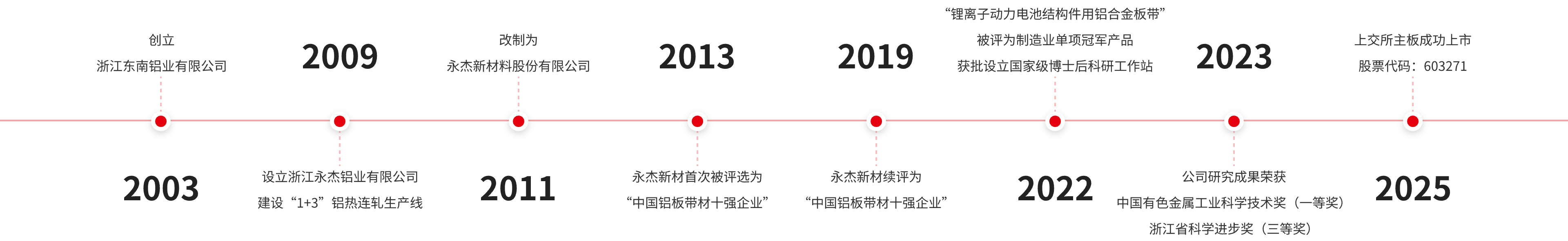 公司成立于2003年,2025年在上交所主板上市,股票代碼:603271。是一家國家高新技術企業(yè),專注于高性能、高精度鋁合金板帶箔產品的研發(fā)與制造,為客戶提供全方位的鋁合金材料解決方案。公司坐落于浙江省杭州市錢塘區(qū),下轄浙江永杰鋁業(yè)有限公司、浙江南杰實業(yè)有限公司、杭州中成鋁業(yè)有限公司、香港南杰資源有限公司等多家全資子公司。公司被評為“中國鋁板帶材十強企業(yè)”、國家級綠色工廠和浙江省“專精特新”企業(yè)等稱號,“永杰鋁”(YJL)商標被認定為中國馳名商標、浙江省出口名牌。